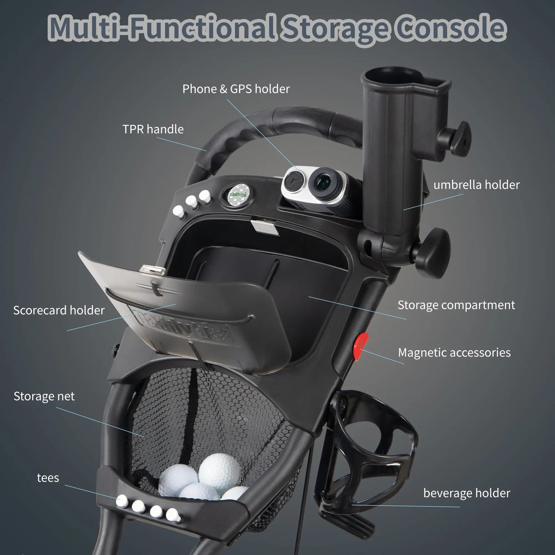 Integrated Storage: Scorecard, beverage, and phone/GPS holders keep everything organized.