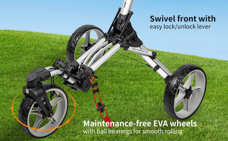 🌀 360° Swivel Front Wheel: Lock for straight lines, unlock for easy turns around the green.