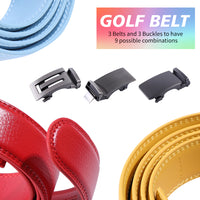 CaddyTek Shiny Edition Golf Belt Set | 9 Style Combos | No-Hole Ratchet Fit | 3 Leather Belts & 3 Buckles