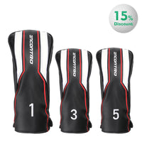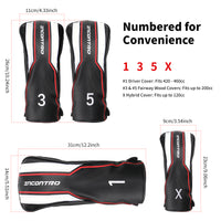 INCONTRO Golf Club Head covers (3/4 - Piece Set) | Motorcycle - Style PU Leather | Plush Lined | #1(460cc), #3/#5(200cc), X(120cc) | Black/Red/White