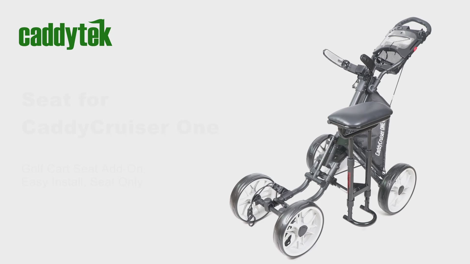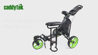 This CaddyTek seat snaps on in seconds without tools and stays on even when folded. Designed exclusively for CaddyCruiser ONE & Swivel ONE models. Add instant rest stops to your round this Black Friday!